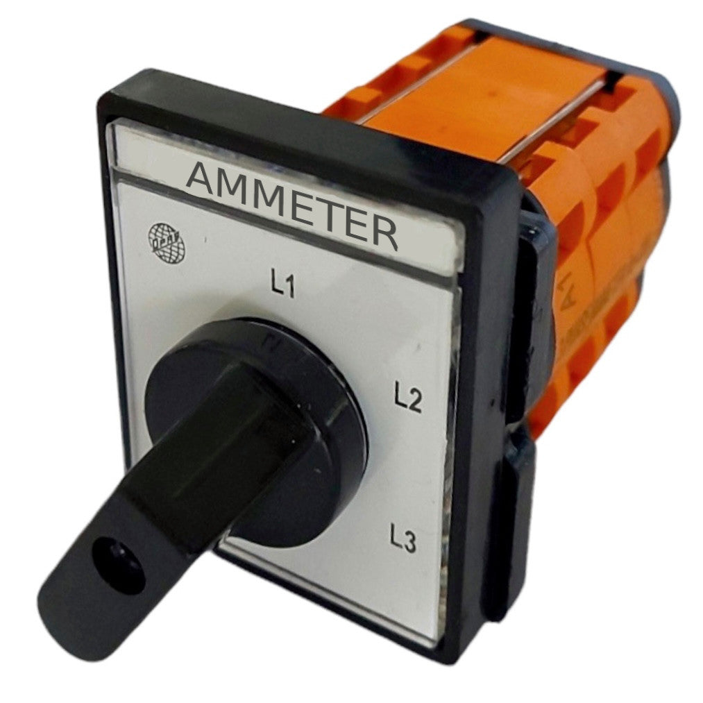 Amperometric switch L1-L2-L3 rotary switch for measuring current in a three-phase system