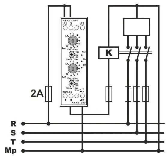 A cyclic relay or cyclic time relay is used to periodically switch on electrical loads (e.g. lights, fans, etc.) or to switch on control signals in automatic monitoring or control systems (e.g. switching on an emergency flashing light or sounding a horn). This cyclic timer can be useful for organizing automatic ventilation processes, opening and closing windows, periodically switching on heating or ventilation, for lighting or rotating advertising signs.