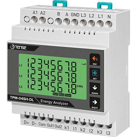 3-phase network analyzer / Network analyzer / Network analyzer - multifunctional digital panel measuring device, indicator for current, voltage, frequency, and total power, with relay output, RS485 ModBus RTU - TPM-04SHDL manufacturer TENSE (Turkey) panel measuring devices.
