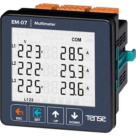 Multimeter - multifunctional digital panel measuring device, indicator for current, voltage, frequency, and total power, with relay output and ModBus RTU manufacturer TENSE (Turkey)