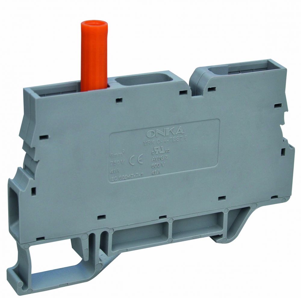Measuring terminal with test connector for bus with thread / DIN rail terminal 2-wire gray, ONKA, made in Turkey