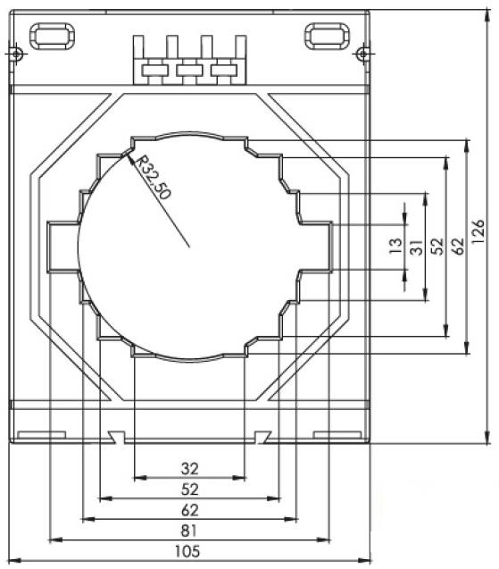 Sliding measuring transformer for primary rated currents of 1500 A, secondary current 5 A, rated outputs 25 VA, offered in accuracy class 0.5S.